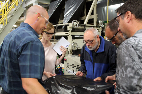 Plant associates acting as tour guides enjoyed this group of visitors because they asked such engaging questions. The scientists were particularly interested in the physical traits of the finished blown film products, such as multi-layers, perforations, and seal types, as well as Petoskey Plastics’ technological capabilities and quality lab. Scientists from the Questioned Documents Unit were especially curious about the printing process during the plant tour.