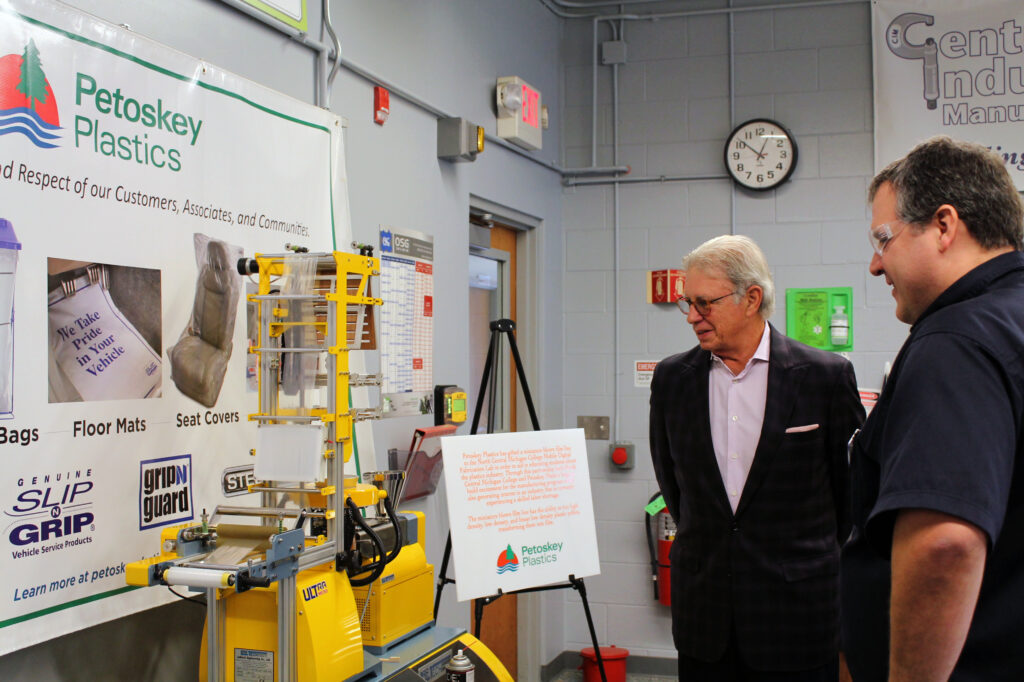 Petoskey Plastics has gifted a miniature blown film line to the North Central Michigan College manufacturing labs in order to aid in educating students about the plastics industry. Through this partnership both North Central Michigan College and Petoskey Plastics hope to build excitement for the manufacturing program while also generating interest in an industry that is currently experiencing a skilled labor shortage.