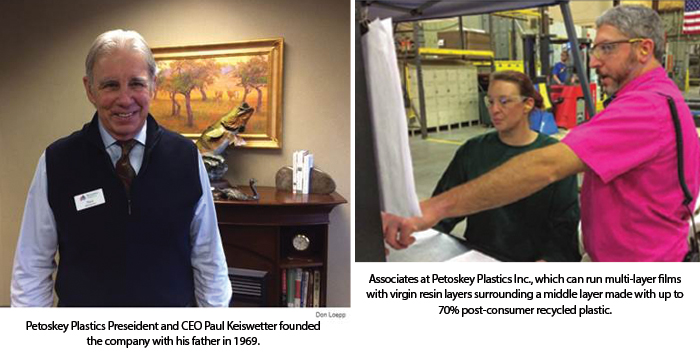 The accompanying article about the finalists states, “Given Petoskey’s expertise in recycled film products, the judges also were impressed by its technology. Making multi-layer blown film is hard enough, and producing that film with a high level of recycled plastics makes it that much more challenging.”